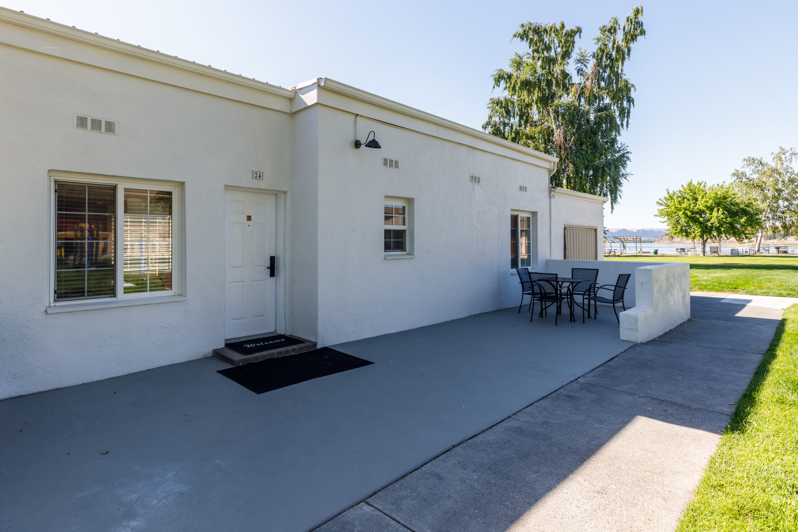 Our cottages feature private patios, walk‑out access to the resort courtyard, full kitchens or kitchenettes, and luxurious double‑jetted tubs.