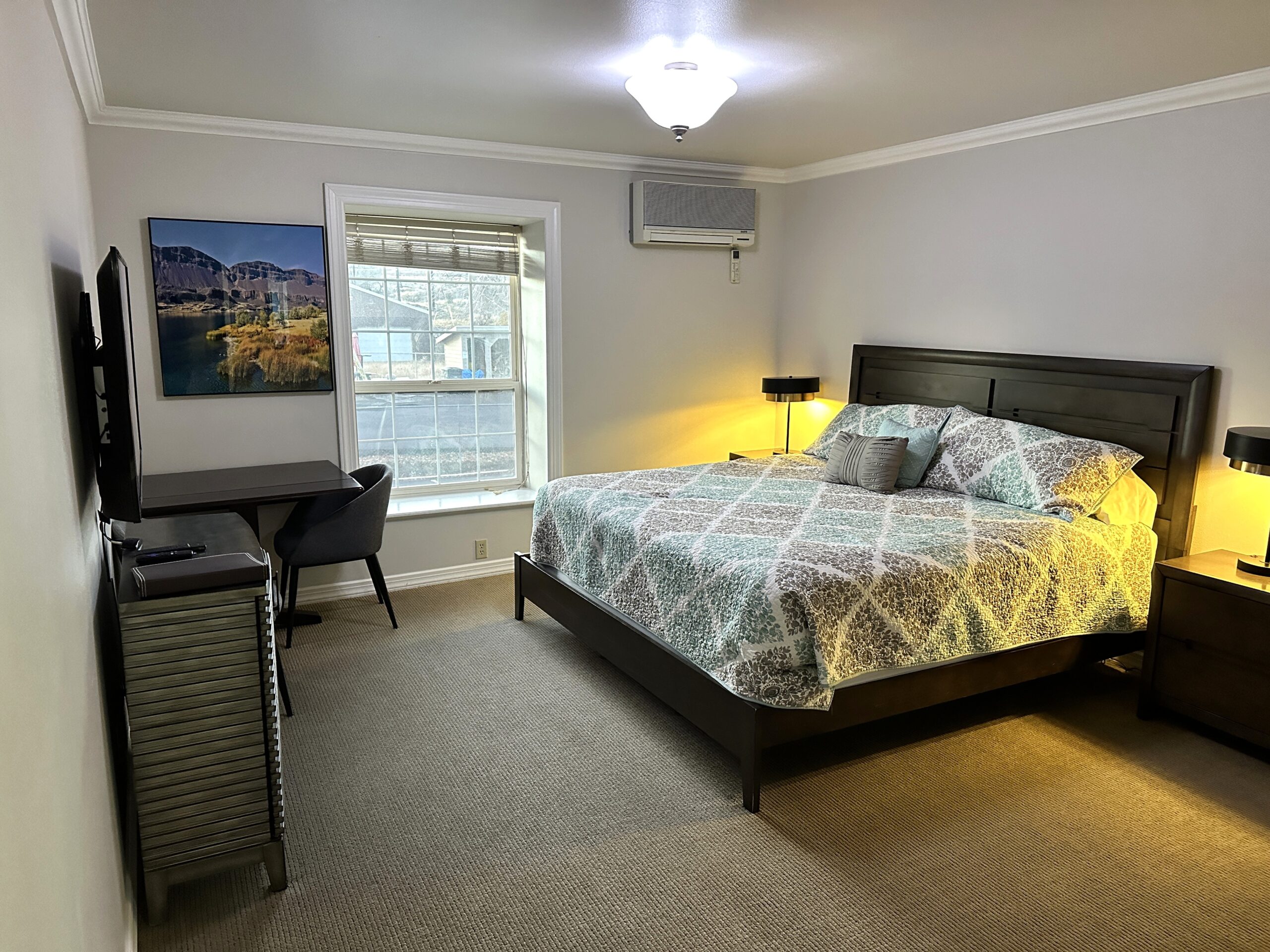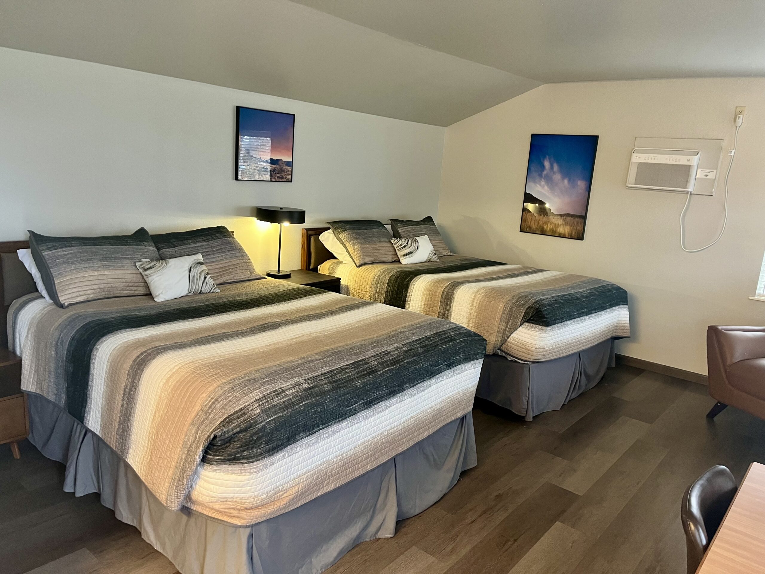 The Inn is a historic rock building built in 1905, offering Queen, King, and Double‑Queen rooms, each featuring our signature in‑room mineral water. The lake‑side wing hosts our Executive Suites with full kitchens, while the opposite end connects to the Stone Forum, a flexible space for retreats and group activities. The first floor is home to The Essence Spa and two hot tubs, making relaxation effortless. With the option to reserve an entire floor or even the whole building, the Inn is ideal for groups seeking comfort, convenience, and a uniquely Soap Lake experience.